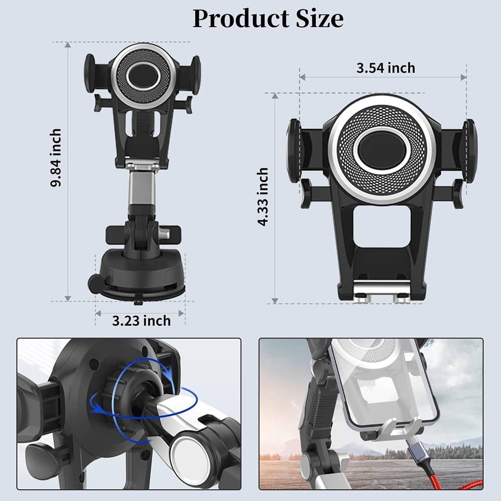 - ابعاد این پایه (۱۶۴*۹۰*۱۲۲ میلیمتر) و وزن آن (۳۵۰ گرم) امکان نصب راحت آن روی شیشه خودرو یا داشبورد را فراهم میکند. این نگهدارنده با انواع موبایل سازگار است.